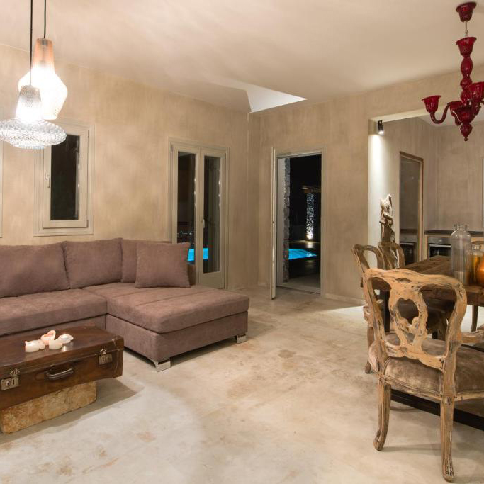 An exclusive location provides a marvelous seashore & mountain landscape.The complex is constructed in an excuisite Cycladic style and covered with a minimalistic luxury. Natural stone and organic elements create a nobel cosiness.
