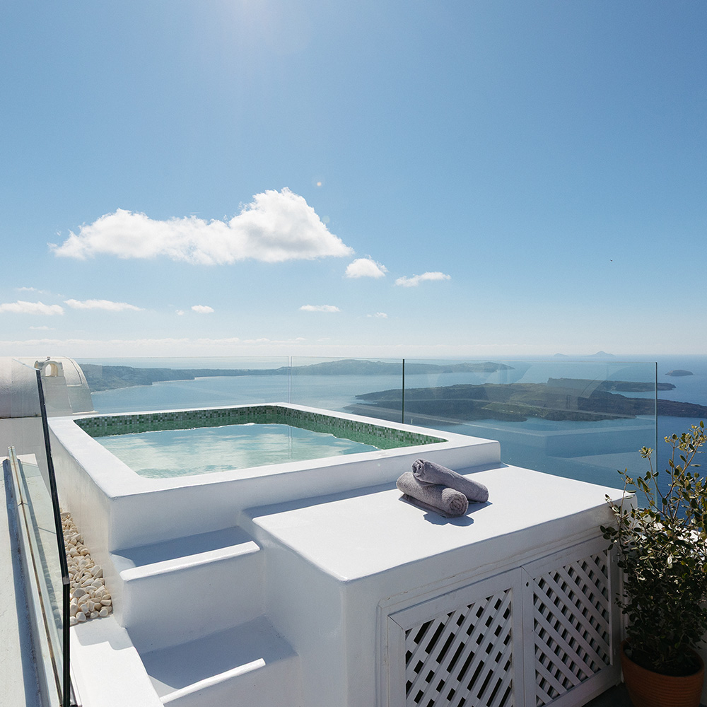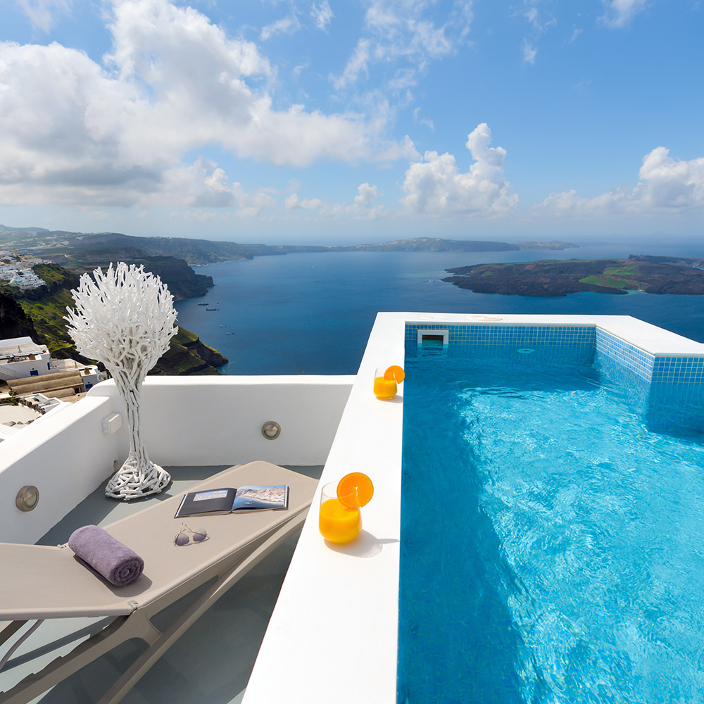 Your one of a kind experience staying at the edge of the world overlooking the Santorini Sunset and Volcano while enjoying your favourite drink in the heated pool. Truly unique and unforgettable experience.