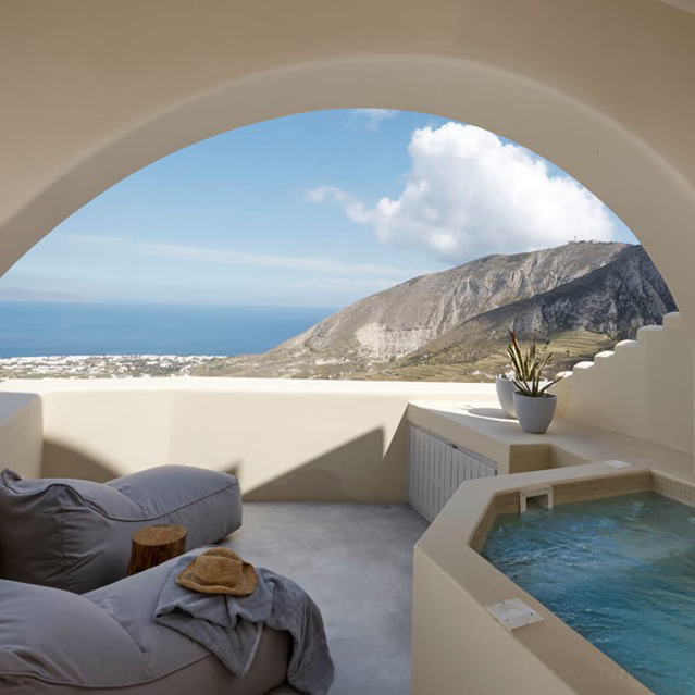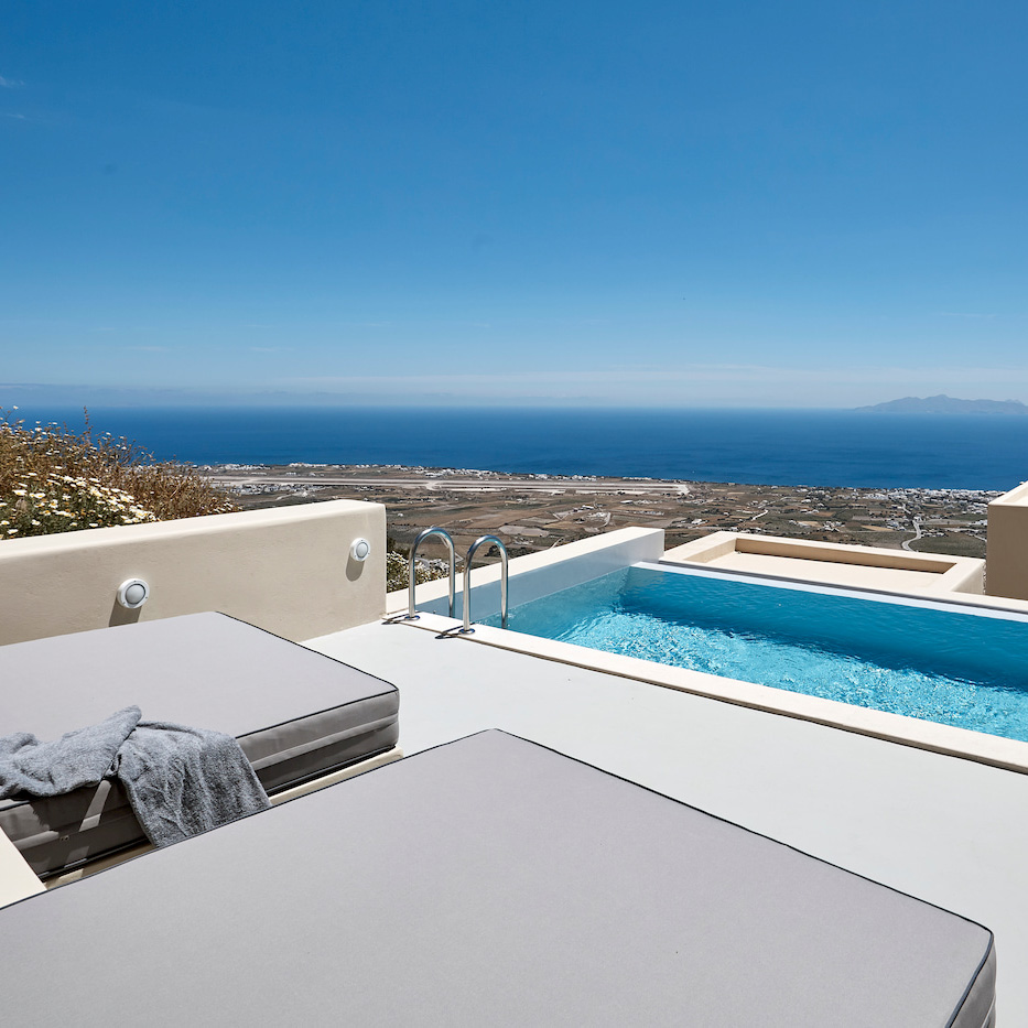 Designed to embrace the island’s volcanic landscape and natural light, each residence offers privacy, comfort, and breathtaking views over the caldera.